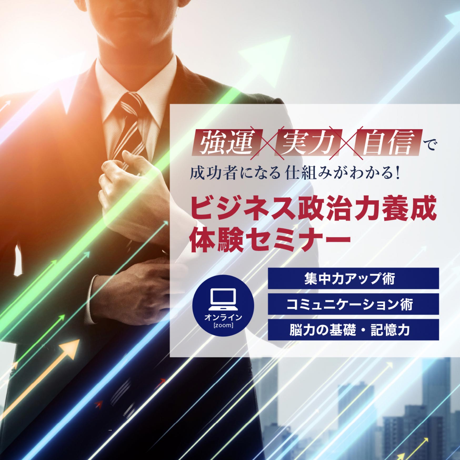 本講座では「実力」と「強運」と「自信」の三本の矢を